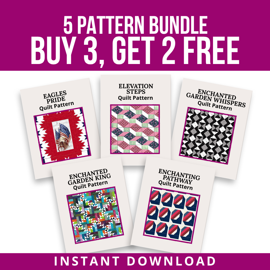 Jumpstart your next quilt projects with our 5-Pattern Bundle 7! A handpicked collection of five beautiful quilt patterns designed to inspire creativity and bring your fabric stash to life.