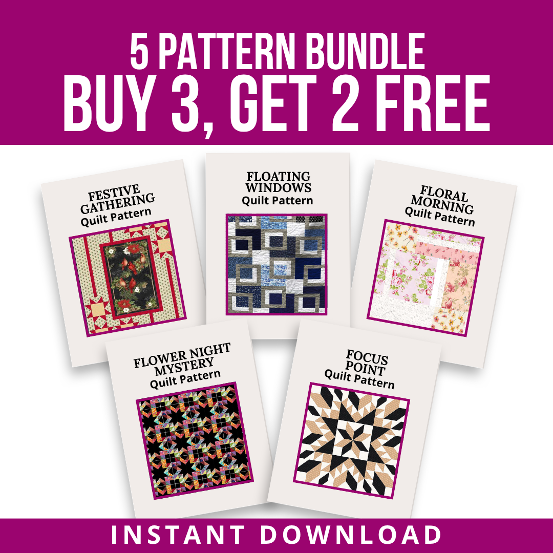 Jumpstart your next quilt projects with our 5-Pattern Bundle 9! A handpicked collection of five beautiful quilt patterns designed to inspire creativity and bring your fabric stash to life.