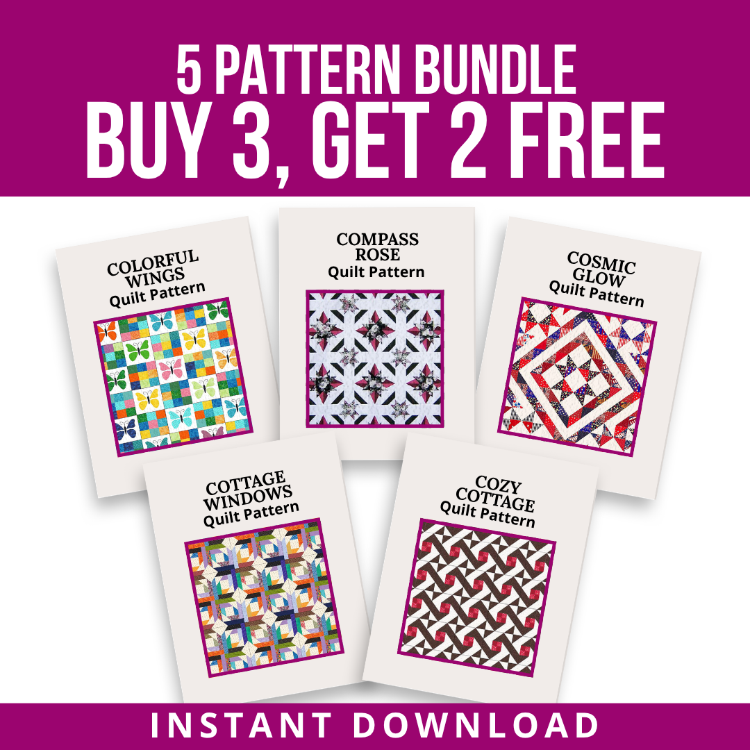 Jumpstart your next quilt projects with our 5-Pattern Bundle 5! A handpicked collection of five beautiful quilt patterns designed to inspire creativity and bring your fabric stash to life.
