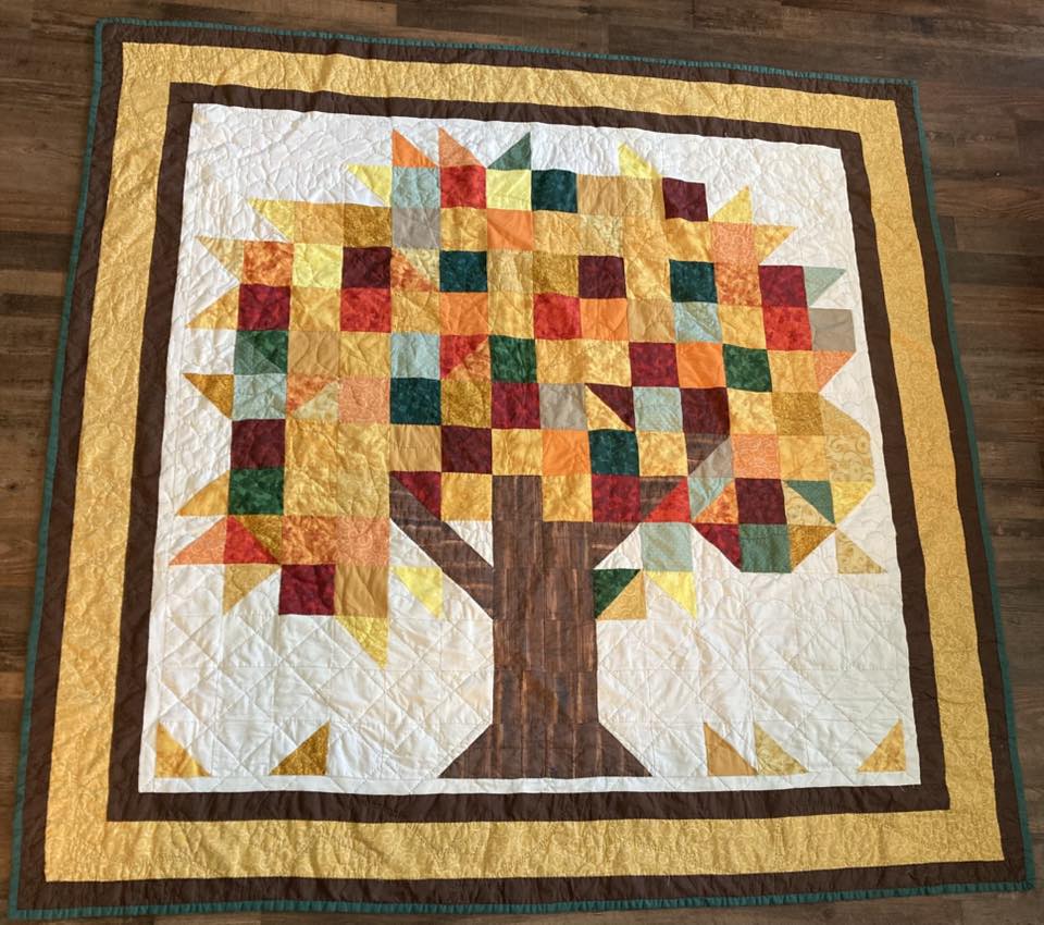 Strength, stability, resilience, and continuity – the rings of a tree tell a story. The beauty of this quilt lies in the layering of texture, pattern, and color with a bold, graphic shape. Combine and contrast prints or solids to grow and show your unique visual story!